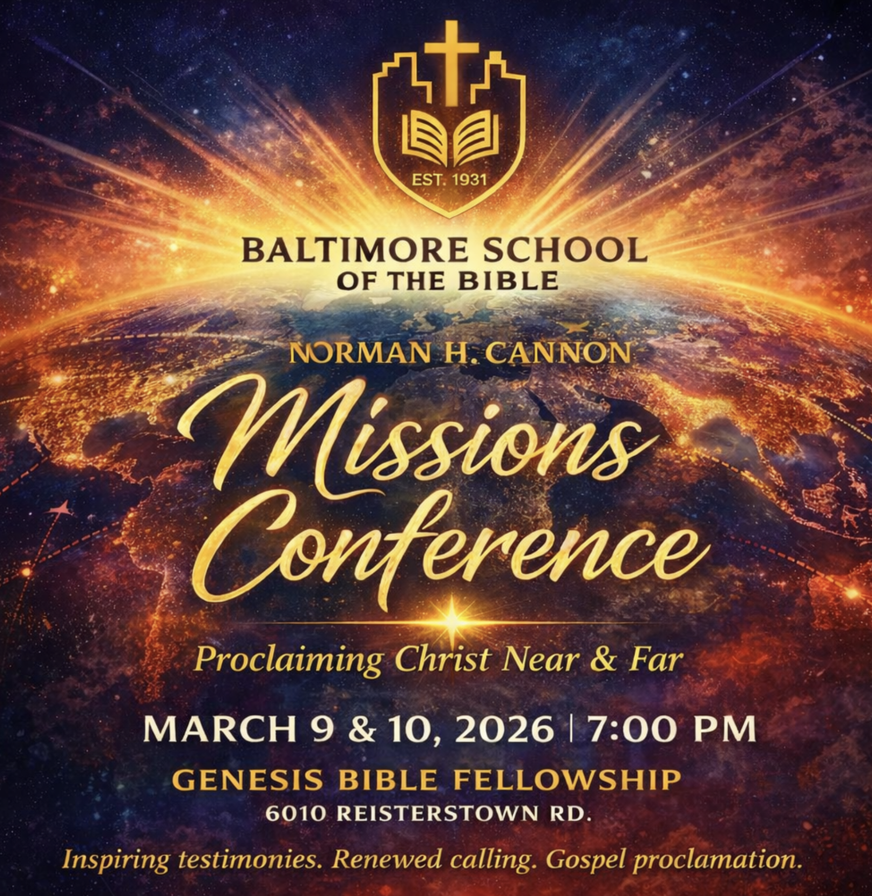 The Baltimore School of the Bible’s Annual Norman Cannon Missions Conference is held in during the spring semester each year. It brings together all students from the different branches and classes for two evening programs that focus on the proclamation of the Gospel through missions, in Baltimore, in Maryland, in America, and throughout the world. The conference is named for Norman Cannon, who served the Lord while serving the School for more than 30 years, as a teacher, board member, secretary and then as its president.